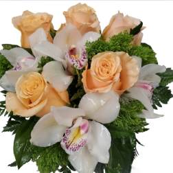 Price: $94.49Peach rose and Cymbidium orchid *cat friendly